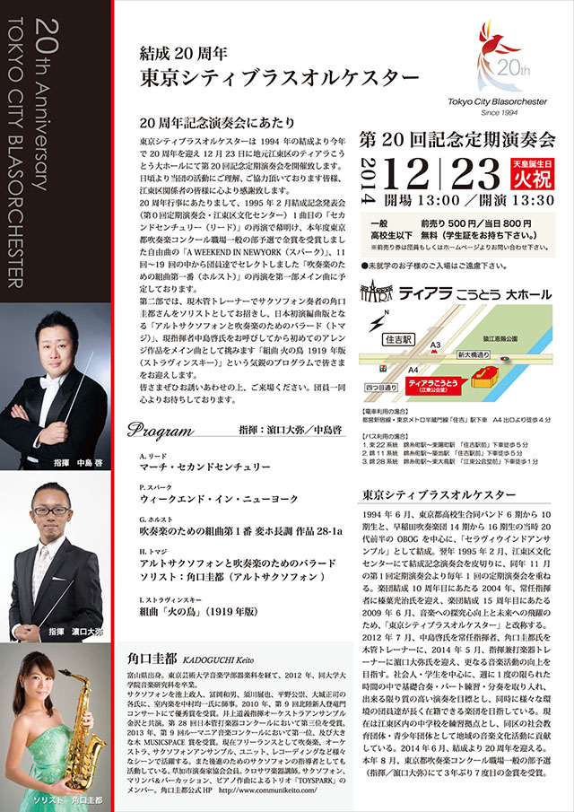 | 東京シティブラスオルケスター(東ブラ)結成20周年 第20回記念定期演奏会 | |