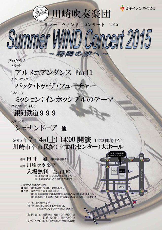 | 川崎吹奏楽団 Summer WIND Concert 2015 ~時間の旅へ~ | |